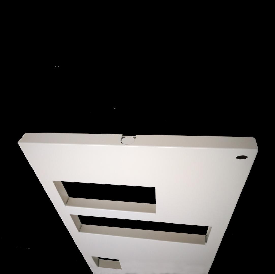 Cubo Termoarredo Geber, piastra dal design unico profonda 30mm, corredata da geometriche aperture porta salviette.